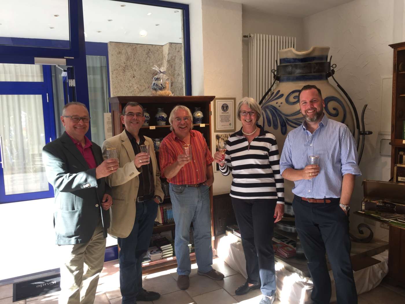 Zu einer Information über das geplante Hanauer Apfelweinmuseum haben sich Vertreterinnen Vertreter der Hanauer FDP mit dem Inhaber des Apfelweinladens Jörg Stier getroffen.